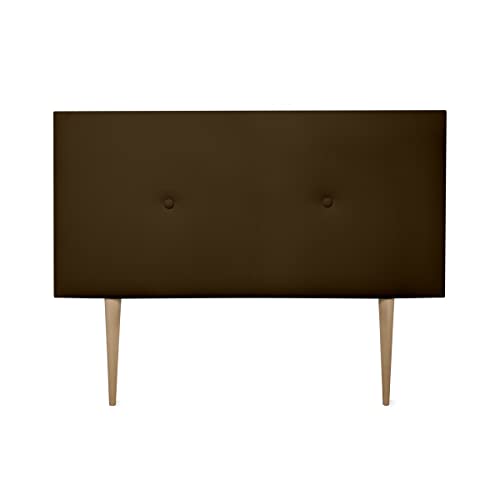 DUÉRMETE ONLINE Premium vadderad sänggavel i milan, med ben, högklassigt konstläder, trä, choklad, 130 x 60 cm (säng 120)