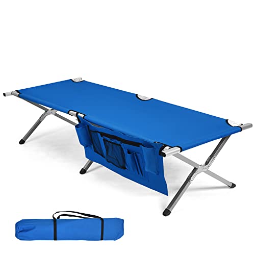 COSTWAY Campingsäng, fältsäng, hopfällbar säng, liggsäng, campingsäng som kan belastas upp till 130 kg, enkelsäng, vikbar säng med sidoficka, 190 x 73 x 42 cm (blå)