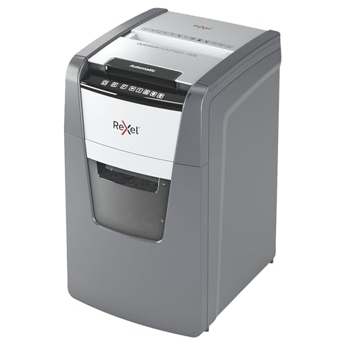 Rexel Optimum AutoFeed+ 130 x automatisk dokumentförstörare, 130 ark automatisk, säkerhetsnivå P4, partikelskärning, för mindre kontor, 44 liter avfallsbehållare, med nätkontakt CH, 2020130XCH