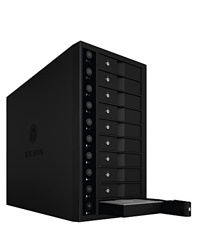 ICY BOX Type-C eller Type-A USB 3,1 Gen 2 External Single System for 10x 3,5 Sata Drives, EasySwap, 140 mm fläkt, Super Cooling