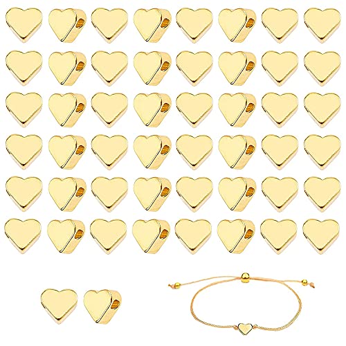 50 stycken hjärtformade pärlor, 7 x 6 mm hjärtpärlor metall, metall guldpärlor, 14K förgylld koppar, för örhängen, halsband, armband, vristlänkar och smyckestillverkning (guld)