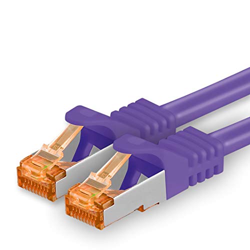 Cat.7 nätverkskabel 1,5 m - violett - 10 stycken - Cat7 patchkabel (SFTP/PIMF/LSZH) rå kabel 10 Gb/s med Rj 45-kontakt Cat.6a - 10 x 1,5 meter violett