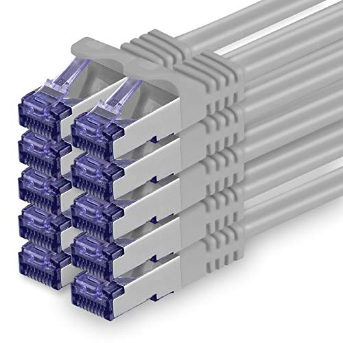 Cat.7 nätverkskabel 1,5 m - grå - 10 delar - Cat7 patchkabel (SFTP/PIMF/LSZH) rå kabel 10 Gb/s med Rj 45-kontakt Cat.6a - 10 x 1,5 meter grå