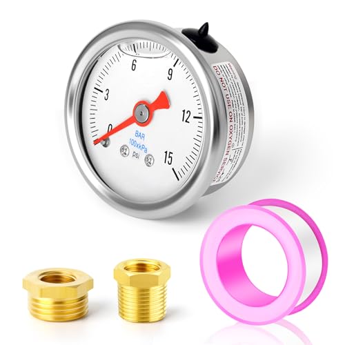 ERGAOBOY 0–1 bar (0–15 PSI) rostfritt stål 1/8 tum BSP 1,5 tum FACE DIAL, glycerinfylld bränsletrycksmätare, vätskefylld manometer WOG vatten olja gas center backmontering