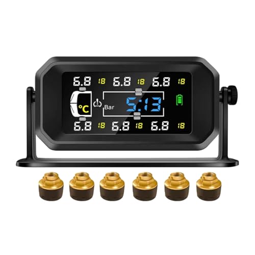 Däcktryckskontrollsystem, TPMS 6 hjullägen, 8/15 BAR, 116/217 PSI Max, med 6 externa koppar däcktryckssensor, vertikal/hängande monterbar, Solar USB-laddning, för bussar, husbilar, lastbilar (0–15