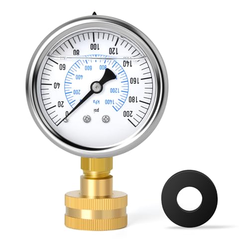ERGAOBOY 0-1 bar (0-15 Psi) 2 tum stålmanometer med dubbel skala för lufttryckstest, 3/4 tum BSP-anslutning, -3-2-3 % noggrannhet