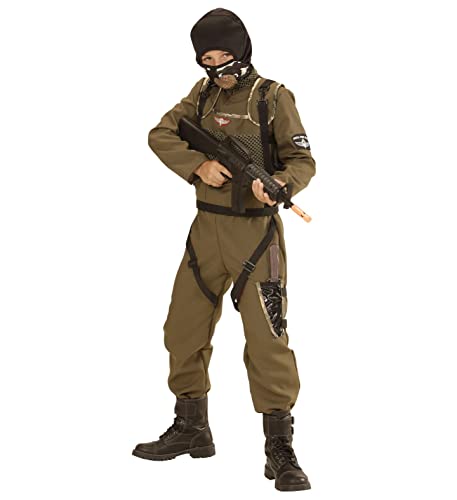 Widmann 49448 – barndräkt fallskärmsfjäder Special Forces, Overall, Weste, huva, grön, storlek 158 116 BRUN