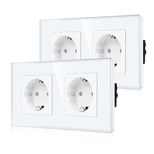 JIMEIDA 2-pack dubbeluttag glas vit infälld, Schuko-uttag skyddskontakt vägguttag 16 ampere, 250 V, 157 mm x 86 mm