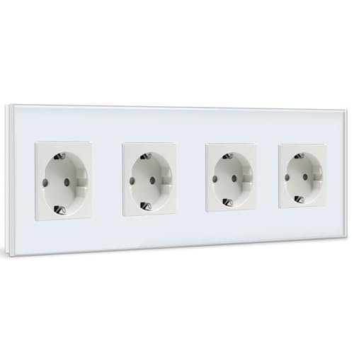 BSEED Schuko-Uttag 4-Faldigt - Kristallglasplatta, 16 Ampere, 299 mm, Vitt Förlängningsuttag, Vägguttag
