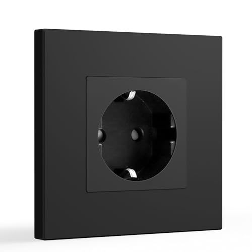 BSEED Schuko-uttag 1 fack inbyggt, vägguttag med PC-platta, infällt uttag 16 ampere EU-standardförlängning, barnsäkring, svart – 86 mm