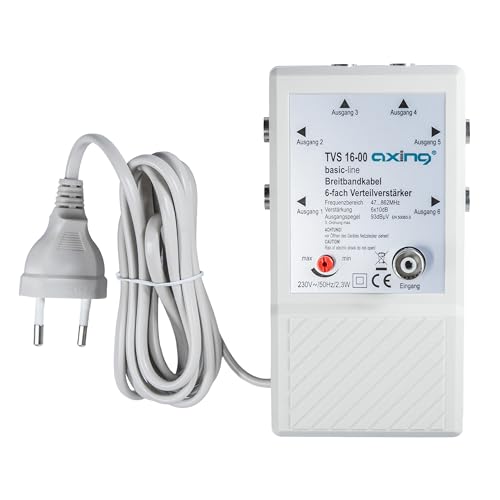 Axing TVS 16-00 6-vägs distributionsförstärkare för liten BK (kabel-tv) och markbundna nät med FM- och DVB-T2 HD