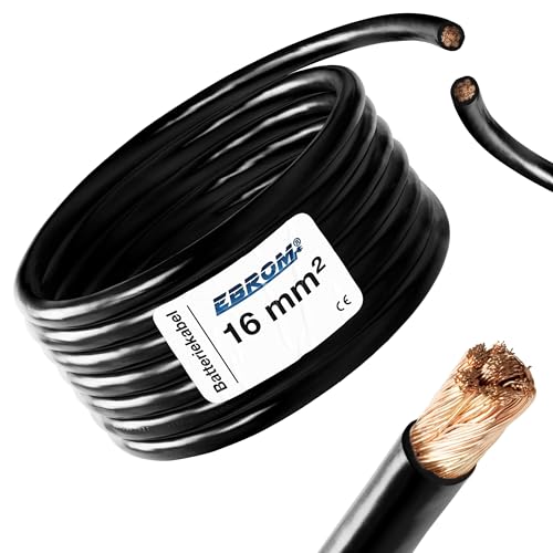 5 meter batterikabel SCHWARZ H07V-K 16 mm² – bilbatteri kabel – 100% OFC koppar – 5 m (5 M) 16 mm2