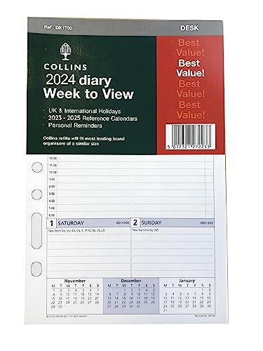 Collins 2024 dagsplanerare arrangör planerare påfyllningsblock – skrivbord – veckovis med möten – 2024 veckoplanerare påfyllning