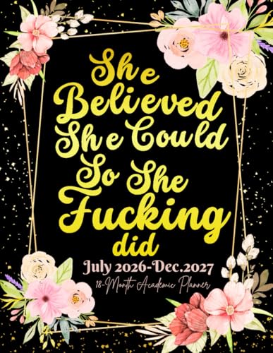 She Believed She Could So She Fucking Did: 18-Month Academic Sweary Planner For Women | 18 Months July to December Calendar Schedule Yearly Goals & To ... Floral Design | Large Size 8.5 x 11 inches