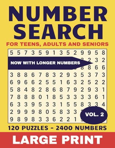 Large Print Number Search for Teens, Adults and Seniors - Volume 2 With Longer Numbers: 120 Puzzles and 2400 Numbers | 8.5 x 11 inches, 240 pages, 18 pt font