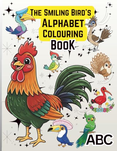Smiling Birds Alphabet: The Colouring Book” (8.5 × 11 inches, colour reference + illustration on same page, ages 3–18+)