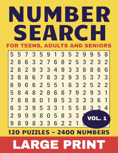 Large Print Number Search for Teens, Adults and Seniors - Volume 1: 120 Puzzles and 2400 Numbers | 8.5 x 11 inches, 240 pages, 18 pt font