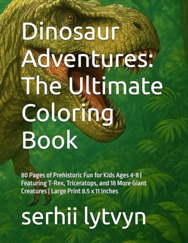 Dinosaur Adventures: The Ultimate Coloring Book: 80 Pages of Prehistoric Fun for Kids Ages 4-8 | Featuring T-Rex, Triceratops, and 18 More Giant Creatures | Large Print 8.5 x 11 Inches