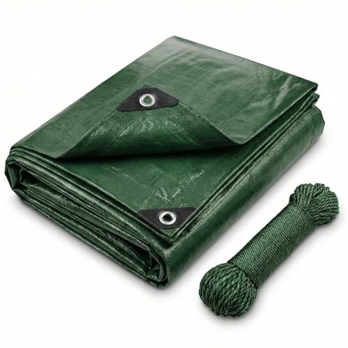 CoverUp! presenning 4 x 4 m [120 g/m2] & 18 m rep, skyddspresenning med metallöljetter för trädgårdsmöbler, pool, bil, lastbil, vattentät och slitstark skyddspresenning