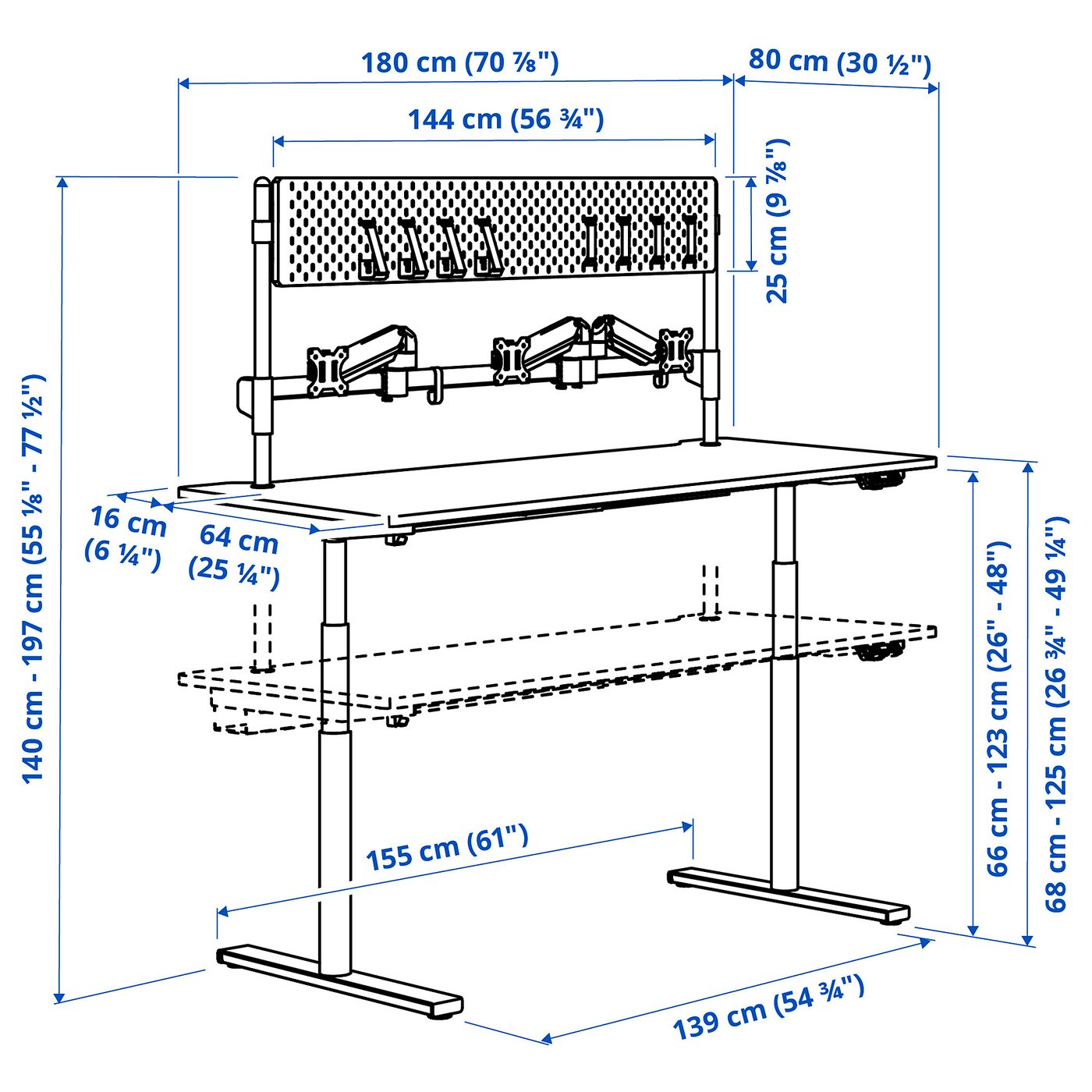 IKEA MÅLOMRÅDE skrivbord för gaming sitt/stå 180x80 cm