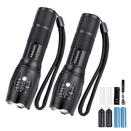 flintronic ficklampa LED uppladdningsbar, superljusa zoombar LED-ficklampor med 4 lägen (inklusive 18650 batteri), taktiska vattentäta ficklampor för barn, fiske, nödbelysning, camping 2 stycken