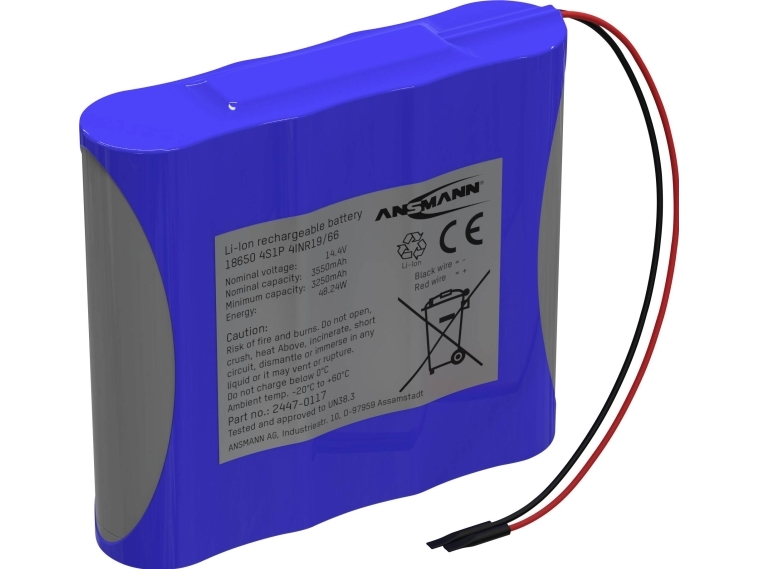 Ansmann 4S1p Akkupack 4X 18650 Kabel Li-Ion 14.4V 2600Mah Batteripakke Celletal: 4 Litium 14.4 V 2600 Mah
