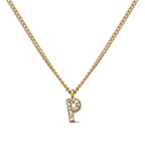 GD GOOD.designs bokstavskedja guld för damer I 18K guldpläterat halsband med zirkoniainitialer I Bokstavskedja i guld av rostfritt stål
