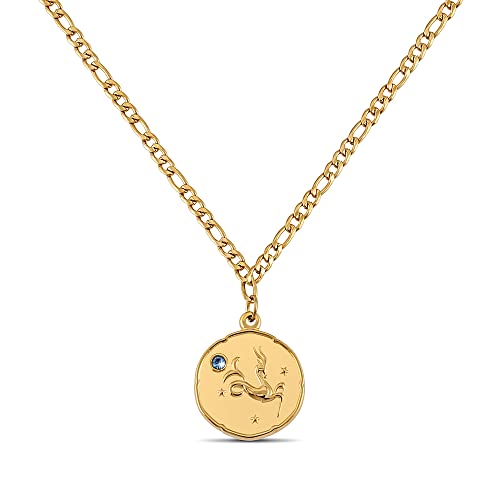 Vattumannens stjärntecken guldhalsband med födelsesten för kvinnor - 18k guldpläterat halsband med zodiakhänge