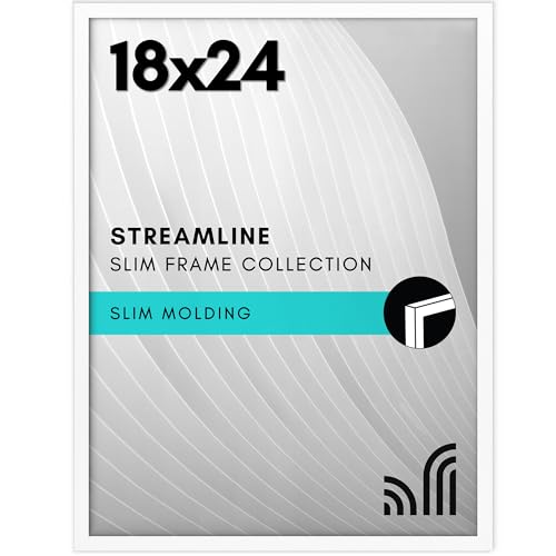Americanflat 18x24 Poster Frame with Polished Plexiglass - Streamline Collection - Thin Border Picture Frame for Wall Display - Hanging Hardware Included - White