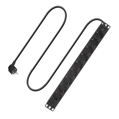 Kwmobile 19 Tum PDU Grenuttag 7-vägs Med Överbelastningsskydd - För 19 Tums Rack - Schuko i Svart