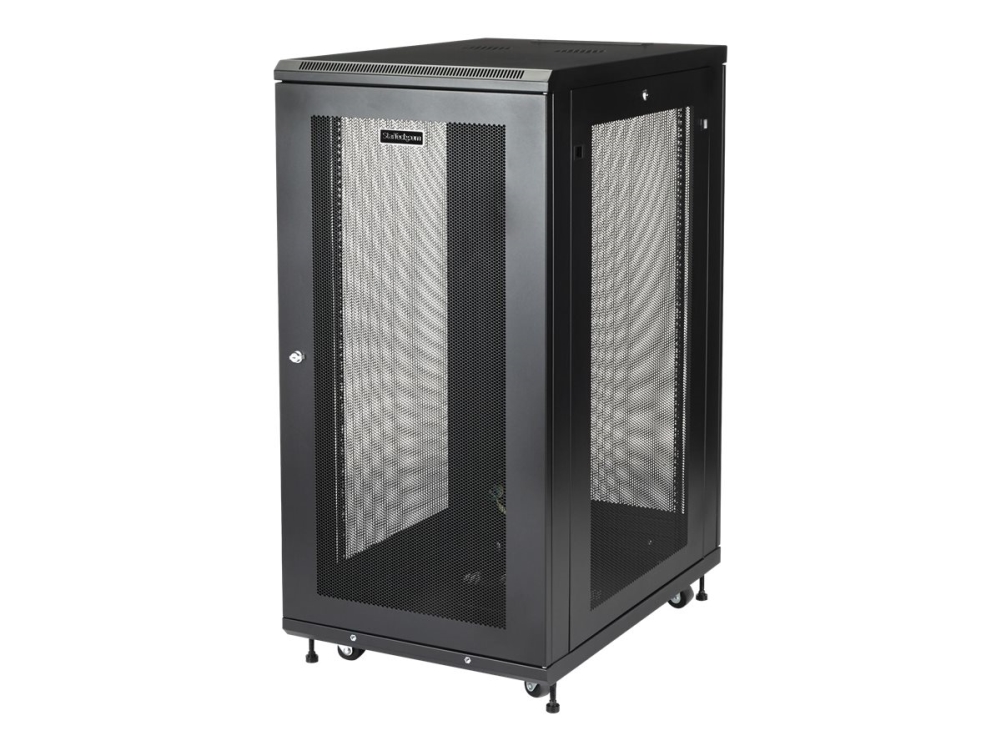 Startech.Com 19-Tums 24U-Serverskåp - 4 Stolpar - Nätverksutrustningsrack Med Justerbart Djup (5 Till 76 Cm) Och Hjul/Kabelhantering/Hylla/1U-Hylla/Låsluckor - Rack Skåp - 24U - 31"