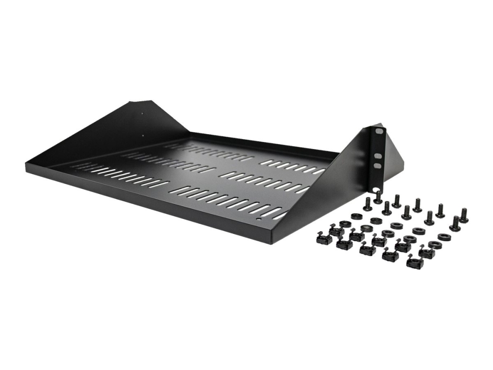 Startech.Com 2U-Serverrackhylla - Universellt Ventilerat Fribärande Fack Med Rackfäste För 19-Tums Rack Och Skåp För Nätverksutrustning - Hållbar Design - Viktkapacitet 91 Kg - 36 Cm Djup Hylla, Svart - Hylla För Rack - Svart - 2U - 19"