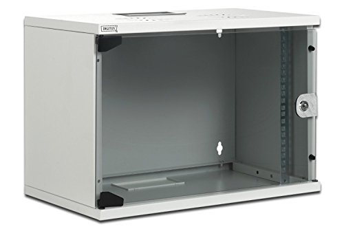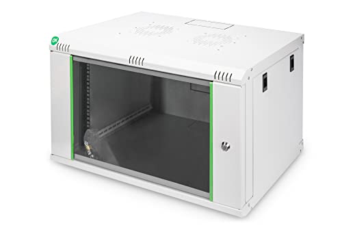 DIGITUS Nätverksskåp - 19-tums rack 9 U - Omonterat - Väggmontering - 400 mm djup - Belastning 60 kg - Glasdörr - Grå
