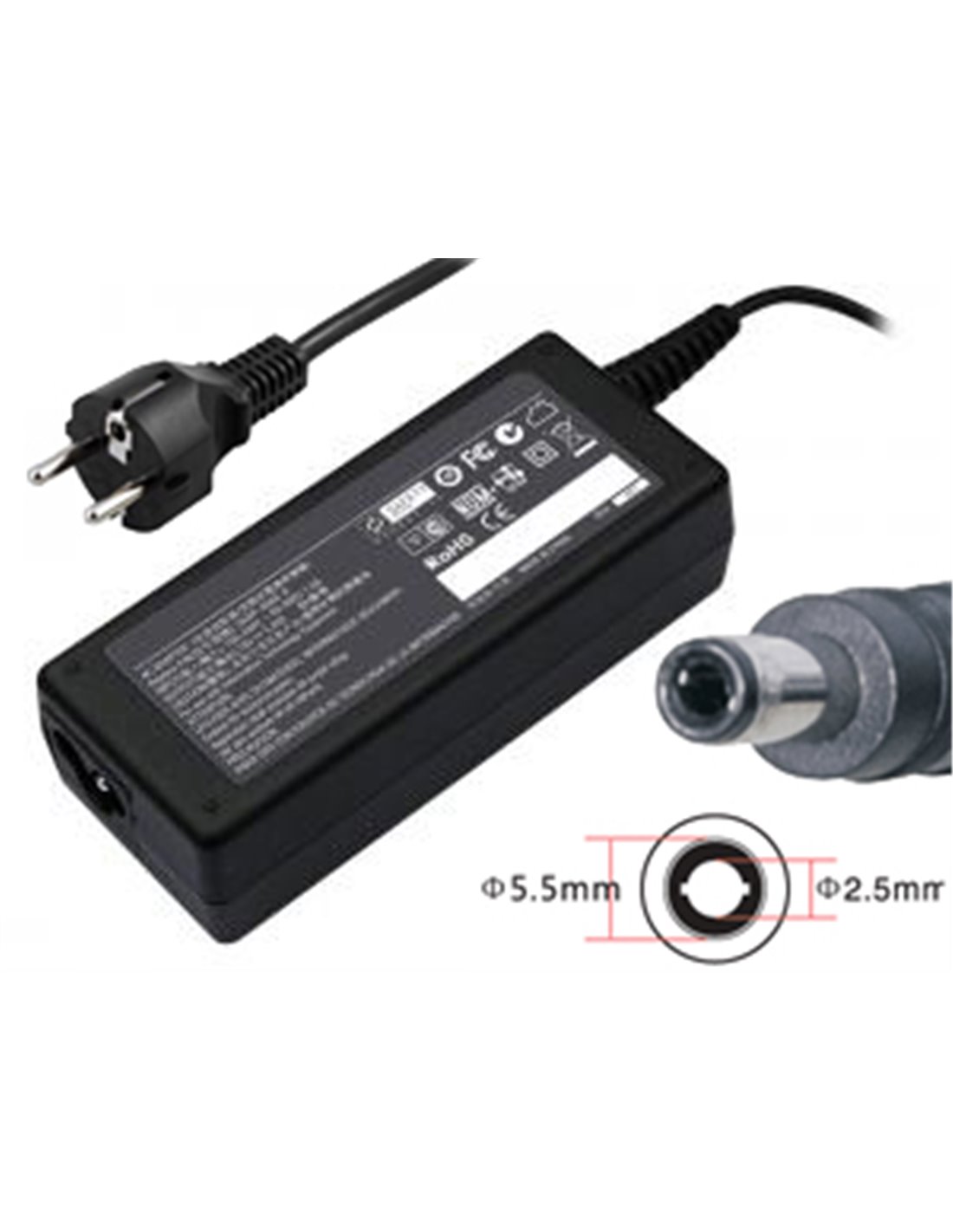 Datorladdare 5.5x2.5mm, 19V 3.42A 65W - Svart