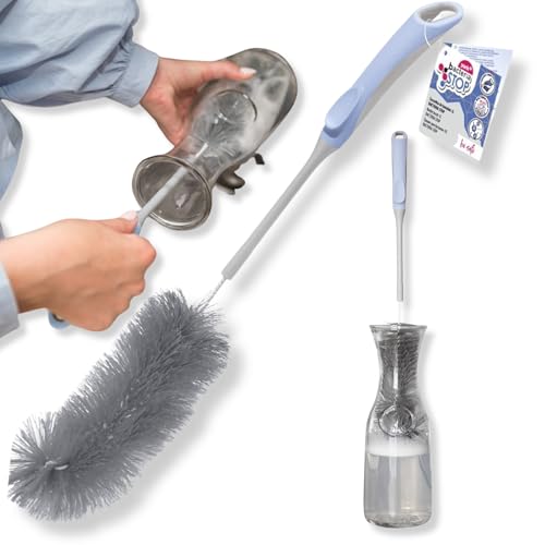 35 cm flaskborste för sodastream glasflaska, envis smuts lossar utan repor, perfekt för 1 l glasflaskor, duo, husdjur mer (med borst och svamp för kraftfull rengöring)