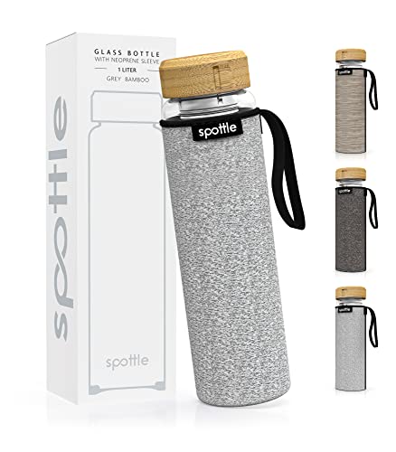spottle Glasflaska för te med rostfri tesil – Borosilikatglas dubbelvägg, Cold Brew flaska med neoprenhölje, diskmaskinssäker, 1L