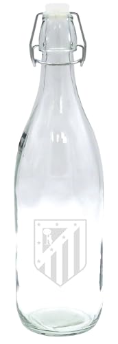 CyP Brands – Atlético de Madrid, vattenflaska, glasflaska, 1 l kapacitet, transparent, vapen från Atlético de Madrid, officiell produkt