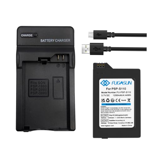 FUGASUN 1 st 1200mAh PSP-S110 PSP-batteri S110 batteri med batteriladdare för Playstation PSP2000 PSP2001 PSP2003 PSP2004 PSP3000 PSP3001 PSP3004