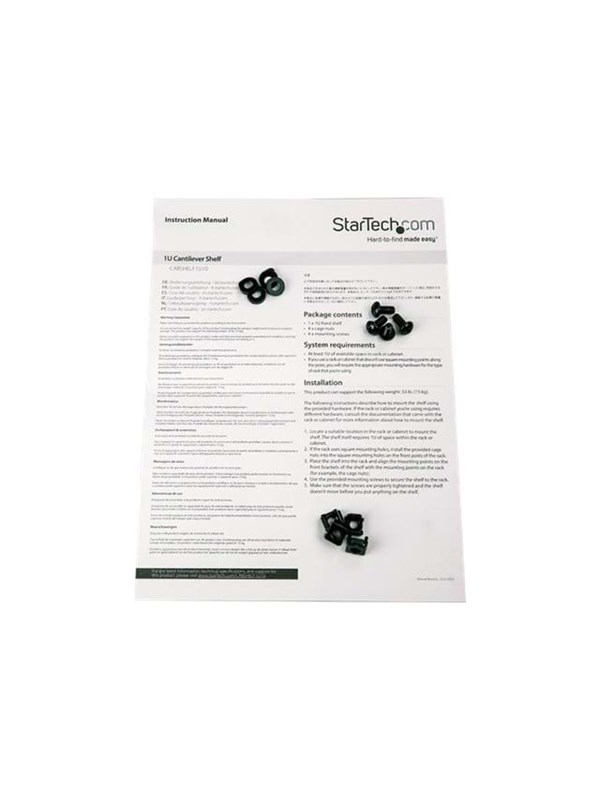 StarTech.com SHELF-1U-12-FIXED-S 1U Network Rack Shelf