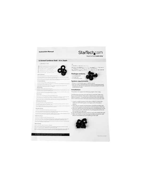 StarTech.com 1U Rack Shelf - 16 Inches Deep rack shelf - 1U