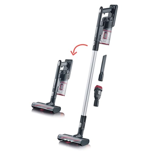 SEVERIN 2-i-1 stick- och handdammsugare, uppladdningsbar dammsugare med upp till 40 minuters drifttid, sladdlös dammsugare med elektrisk höghastighetsborste med LED-belysning, svart/röd, HV 7154