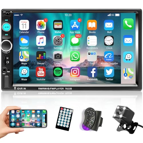 Bluetooth 2 Din bilradio Podofo, 7” pekskärm, FM-radio, USB, AUX, SD, TF-kort, spegellänk för IOS/Android-telefoner, dubbel-din, bilstereospelare + ratt-fjärrkontroll + backup-kamera