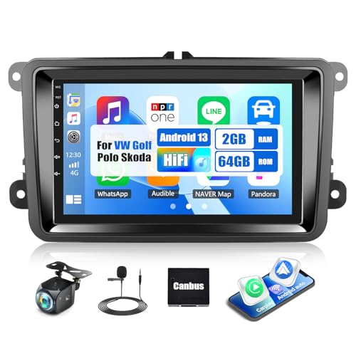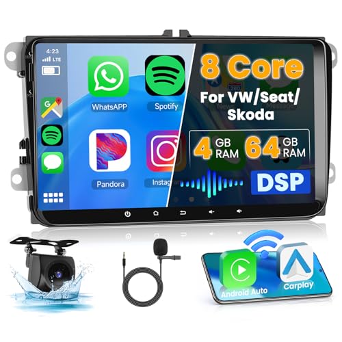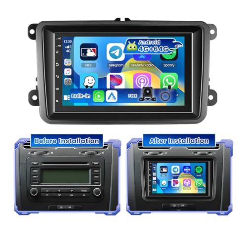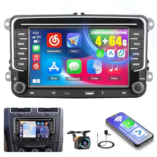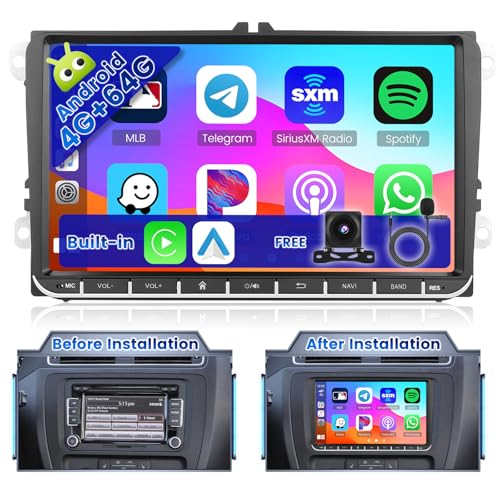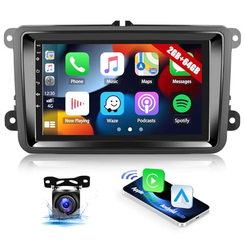 【4+64G】 Hodozzy Carplay bilradio för VW Passat Golfsäte Altea Skoda Octavia med USB/USB-C/GPS/WiFi, VW bilradio 7 2 Din Bluetooth med Android Auto/32 EQ/FM/RDS/SWC+backkamera