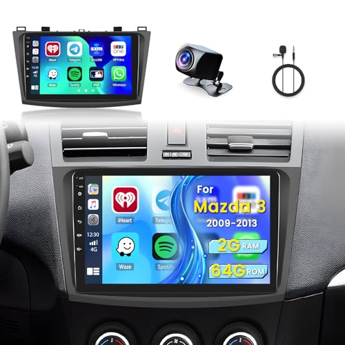 Inefala Upgrade 9 tums pekskärm bilradio, 2 DIN Android 15-radio för Mazda 3 2009–2013, 2G 64G, trådlös Carplay & Android Auto, GPS/WiFi/BT/USB/RDS/FM, mikrofon, backkamera