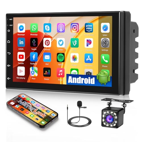 2 Din Android 13 bilradio med GPS-navigering och Bluetooth 7-tums dubbel din stereoradio pekskärm med WiFi FM/RDS-radio AUX-in-spegelanslutning + backkamera