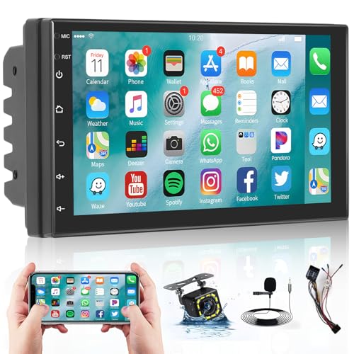 Hikity - Bilradio 2 Din med Carplay Android bilradio 7 tums pekskärm Bluetooth dubbel din bilradio FM USB AUX SWC backkamera