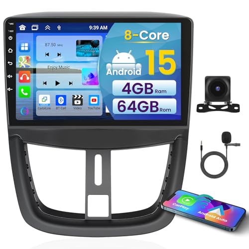 Inefala 8 kärnor/4 64 GB bilradio 2 Din Android för Peugeot 207 2006–2010, trådlös Carplay och Android bil, 9 tums pekskärm radio med GPS, Bluetooth, WiFi, 32EQ, DSP, 59UI, RDS, backkamera