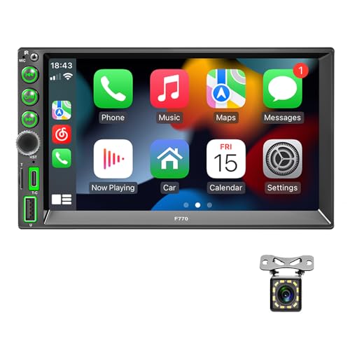 VECHTEL Bilradio 2 Din med Carplay Android Auto Trådlös, 7 tum pekskärm Bluetooth Stereo Bil, FM-radio, Type-C/USB/TF/AUX, spegellänk, bakre kamera, fjärrkontroll