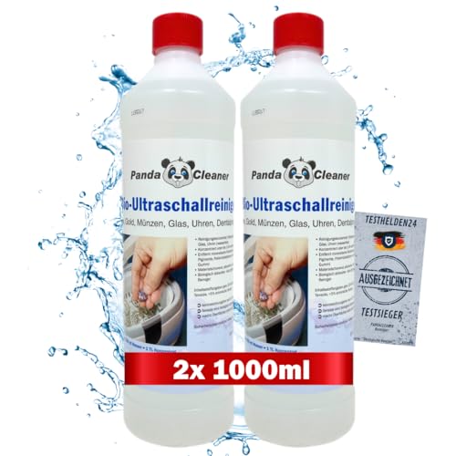 PANDACLEANER ultraljudsrengörare för ultraljudsbad - 2x 1L koncentrat för glasögon, smycken, tandvårdsprodukter, guld, mynt, glas, klockor (vattentät) och mycket mer. | 2000ml
