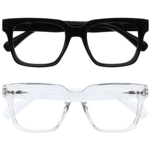 OPULIZE Bläckläsglasögon 2-pack stor rektangulär ram transparent arm fjädergångjärn reptåliga män kvinnor RR4-7 +1,50